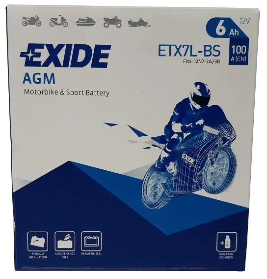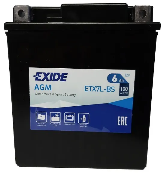 ZALETY akumulatora EXIDE ETX7L-BS/YTX7L-BS: 1. Wysoka moc rozruchowa, odporność na wstrząsy, wydłużony czas użytkowania, całkowicie bezobsługowy, 2. Zaprojektowany dla szerokiej gamy pojazdów m.in. motocykli, skuterów, quadów, skuterów wodnych i śnieżnych, małych traktorów czy kosiarek do strzyżenia trawy, 3. Przystosowany do pracy w każdych warunkach, w różnych pozycjach, oraz do sezonowego użytkowania.