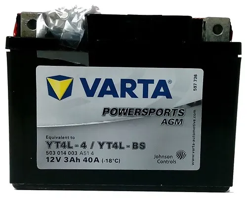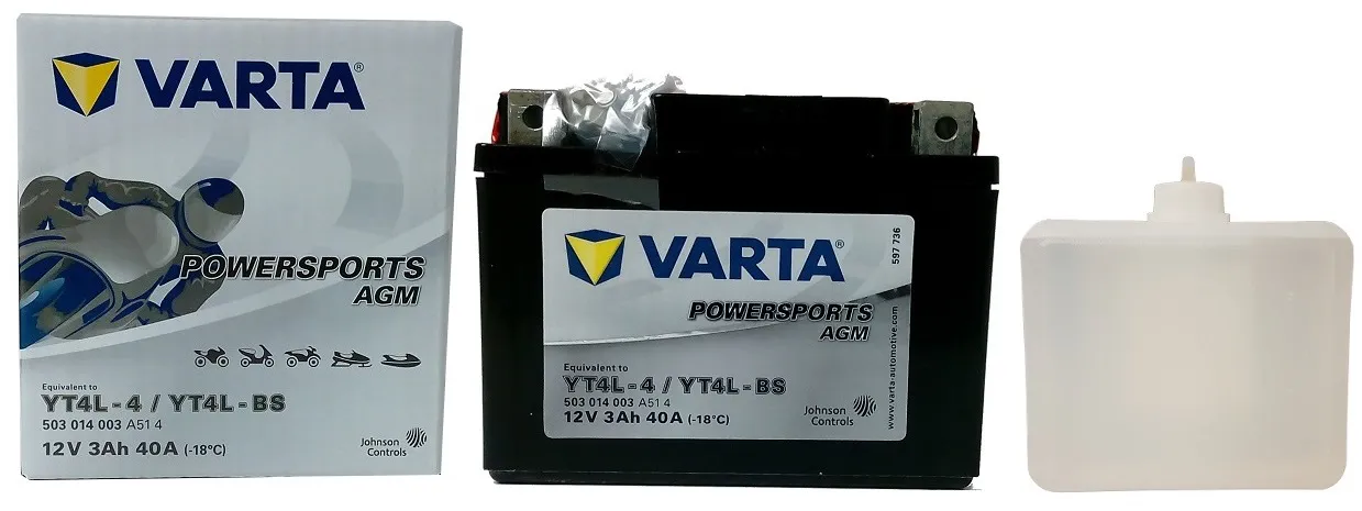 Główne Zalety akumulatora VARTA YT4L-BS :1. Akumulator bezobsługowy – bez konieczności uzupełniania elektrolitu,