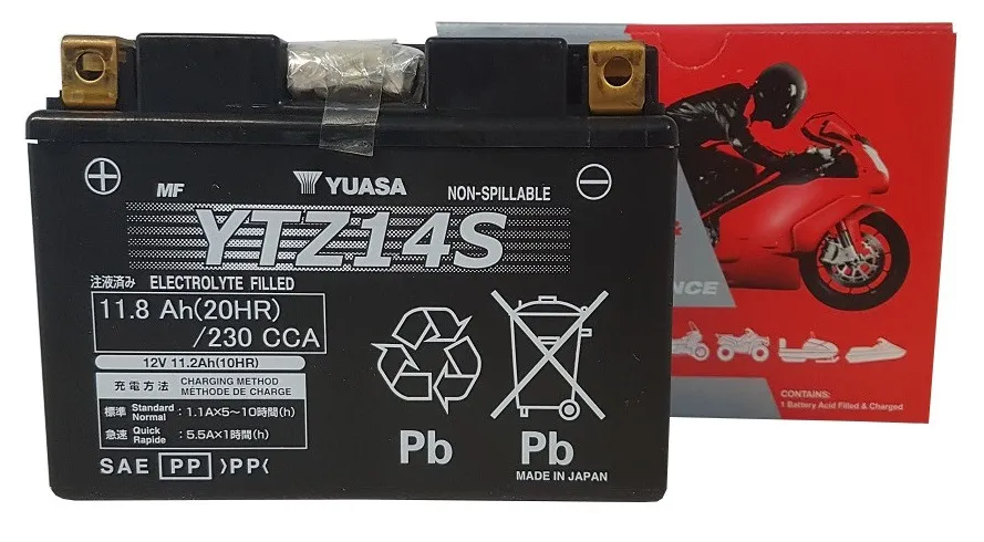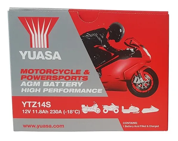 GŁÓWNE ZALETY akumulatora YUASA YTZ14S-BS: 1. Jakość produkcji i konstrukcja sprawia, że są uważane za jedne z najlepszych baterii w swojej klasie, 2. Wytrzymałość, solidność, niezawodność, 3. Odporność na korozję, wycieki, uszkodzenia czy uderzenia, 4. Długa żywotność baterii, 5. Wysoka moc rozruchowa.