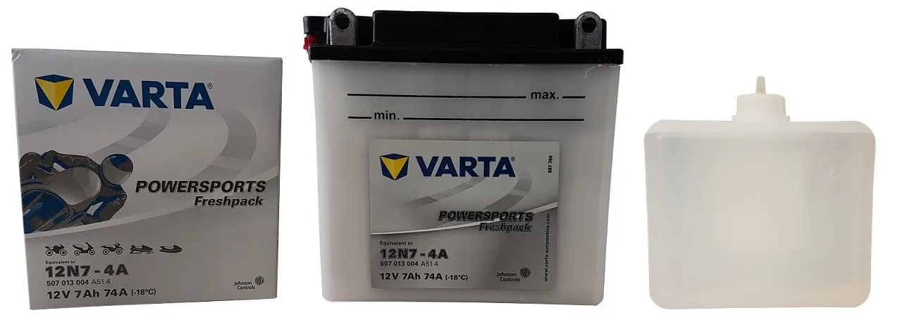W zestawie z akumulatorem konwencjonalnym 12N7-4A otrzymujemy oryginalnie zapakowany elektrolit a jego pierwsze uruchomienie następuje dopiero po zalaniu go elektrolitem. Pełne swoje właściwości i długą żywotność uzyskuje on dopiero w ciągu ok.30 minut od momentu tzw. aktywacji (czyli zalania). Taki akumulator jest naładowany w ok 80% dlatego należy go jeszcze doładować z użyciem ładowarki automatycznej żeby uniknąć przeładowania.