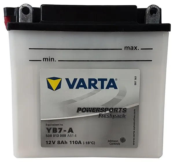 Akumulatory Varta YB7-A o pojemności 8Ah nadają się idealnie w pojazdach które do rozruchu potrzebują 110A