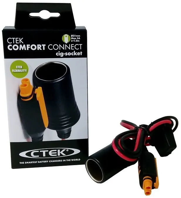 56-573 CTEK COMFORT CONNECT CIG-SOCKET – gniazdo zapalniczki wraz ze specjalną szybko złączką ułatwiającą podłączenie do ładowania. Długość kabla 1m, max. prąd ładowania 5A. Oznaczenie wg producenta 56-573.