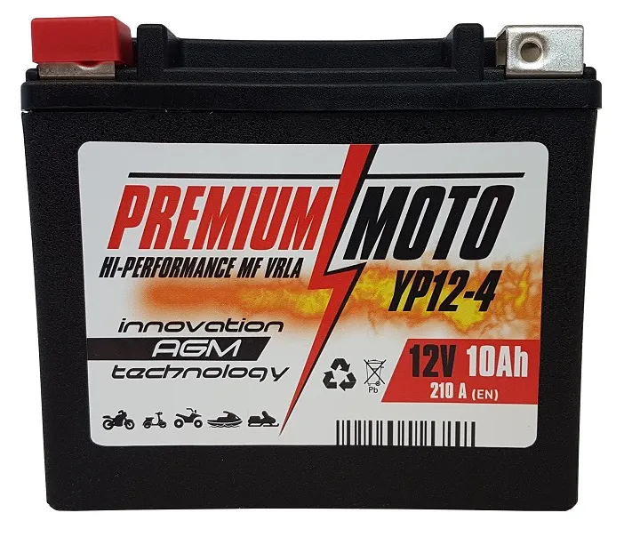 PREMIUM MOTO to w pełni bezobsługowe, szczelne i fabrycznie uruchomione baterie wykonane w technologii AGM, przeznaczone do motocykli, skuterów, ATV, kosiarek, skuterów śnieżnych i wodnych.