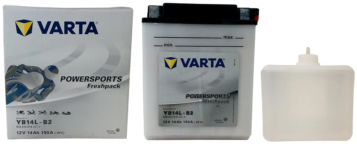 Varta dla motocyklistów przygotowała ekonomiczny i prosty w instalacji trwały i mocny akumulator YB14L-B2 PowerSports z zestawem Freshpack (2w1).